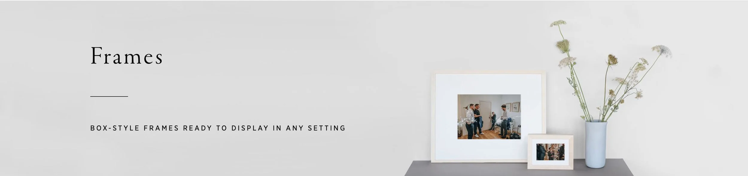 Printed on lustre photo paper, framed in a pre-assembled wooden box-style frame with a permanent tan paper backing and hanging hardware.